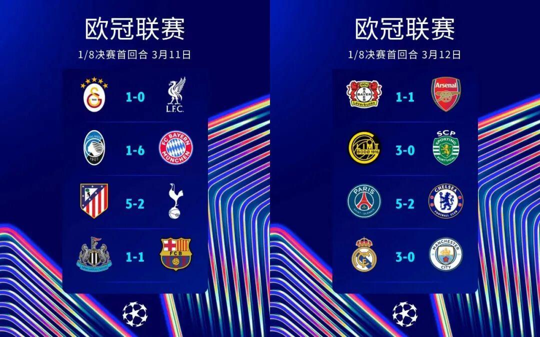 虎扑体育-欧冠1/8决赛首回合综述:闪耀哥5连胜神挡杀神,英超6队得2分丢16球